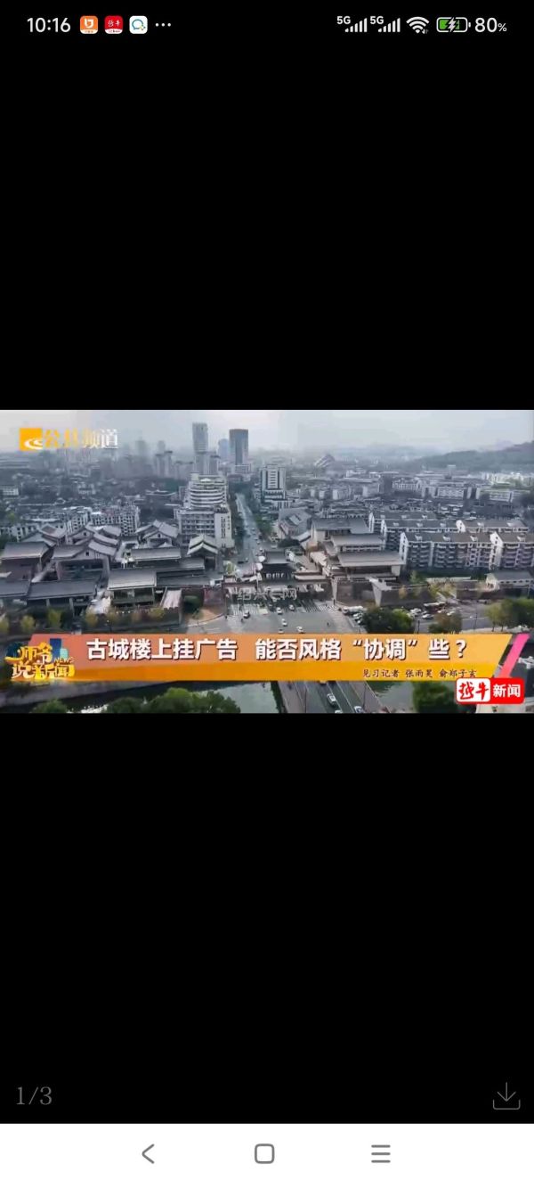 绍兴市文化产业发展投资有限公司 工作人员 翁浪平:这个位置的话本身就是我们公司在运营的一个商业综合体,城墙上面我们也是觉得市民或者是外地游客过来会比较醒目,看到这个地方,对宣传直升机项目是一个非常好的地方,停车场完全是一个公益的项目,我们也是想让市民朋友解决停车难的问题,历史上城墙上面也是有做广告的,而且我们后续也是会增强一个审核优化/我们后续在做广告上也会跟城墙的设计的整体风格会更加协调。
