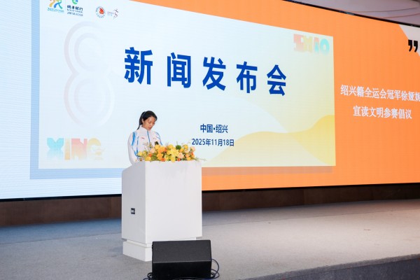 在新闻发布环节,绍兴市体育局党组书记、局长赵腾飞作越马新闻发布,现场展示了赛事服装和奖牌实物。