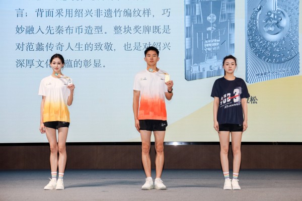 延续"一年一名人"传统,今年越马特邀"商圣范蠡"担任文化代言人。赛事采用全新主视觉,融合"绍兴古城"、"文化越马"、"烟雨江南"三大元素,锁定11月绍兴专属色"琥珀色"。参赛服以全新主视觉为基底,采用"柯桥优选"科技功能纤维,完赛奖牌则以"范蠡腰牌"为设计灵感。组委会还为破三跑者准备专属纪念T恤。另外,赛事还精心打造了系列文创衍生品,其中,范蠡纪念币将随参赛包发放至每位选手,寓意"持币而行,财富相随"。