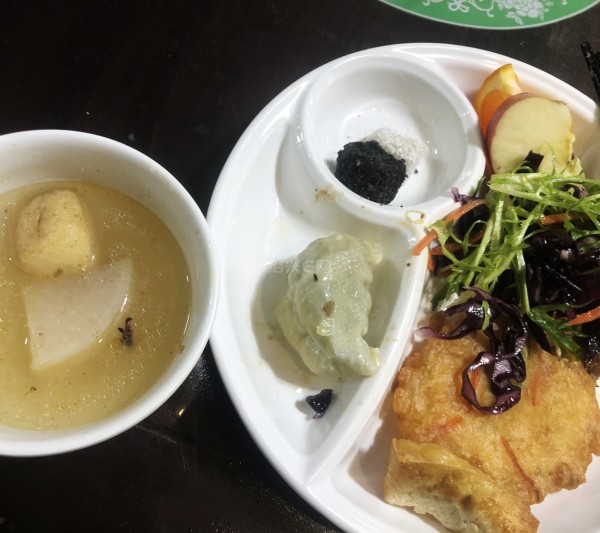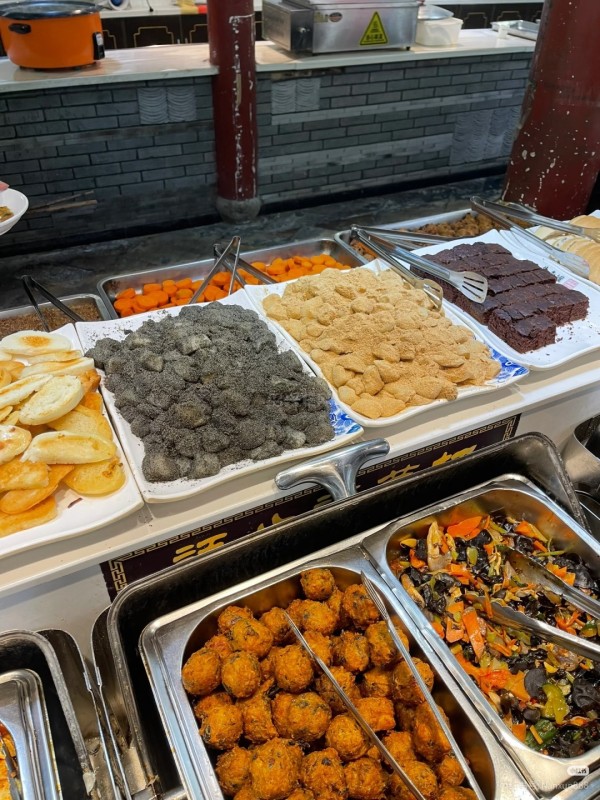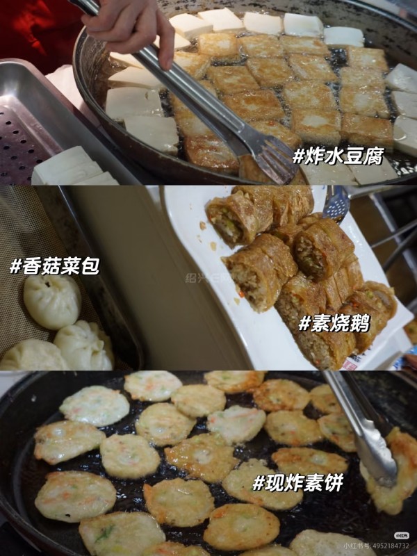 靠墙现炸的素饼很好吃……品种很多 每种来一点就很饱了
