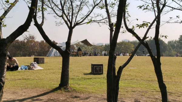今天气温回升,又恰逢双休日,公园里带孩子踏秋赏景的人渐渐多起来了,有的还自带帐篷,看上去还不错!