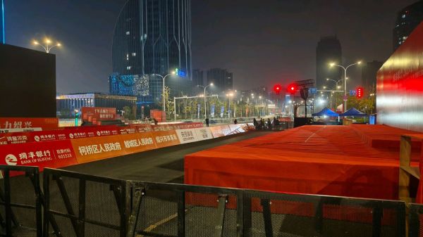 马拉松起点站设施设备巳经准备就绪!看了下天气预报,明天是个大晴天,气温8~20℃,真不错,预祝赛事圆满完成