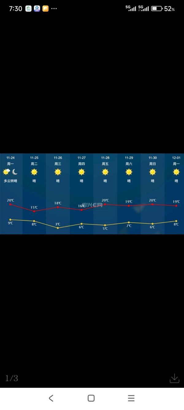 接下来,阳光要成“劳模”了,准备坚守岗位至12月初。只是下周有两股干冷空气活动,分别是24日夜里-25日,以及27日前后。届时白天最高气温会从2字头退回至1字头,需加强保暖。