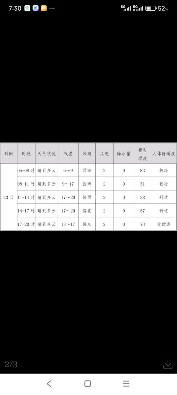 今天到明天晴到多云。偏南风转西北风2~3级。