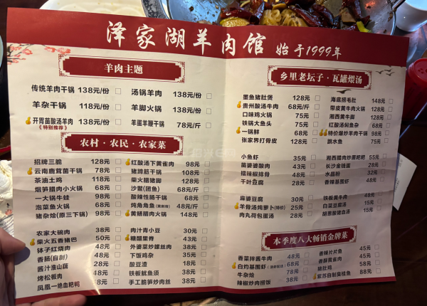 从夯吉回到吉首市区,选了一家当地的老馆子:泽家湖羊肉馆,泽家湖羊肉馆是湘西地区以土家风味羊肉为特色的餐饮品牌,主要提供湘西香料烹制的羊肉菜肴