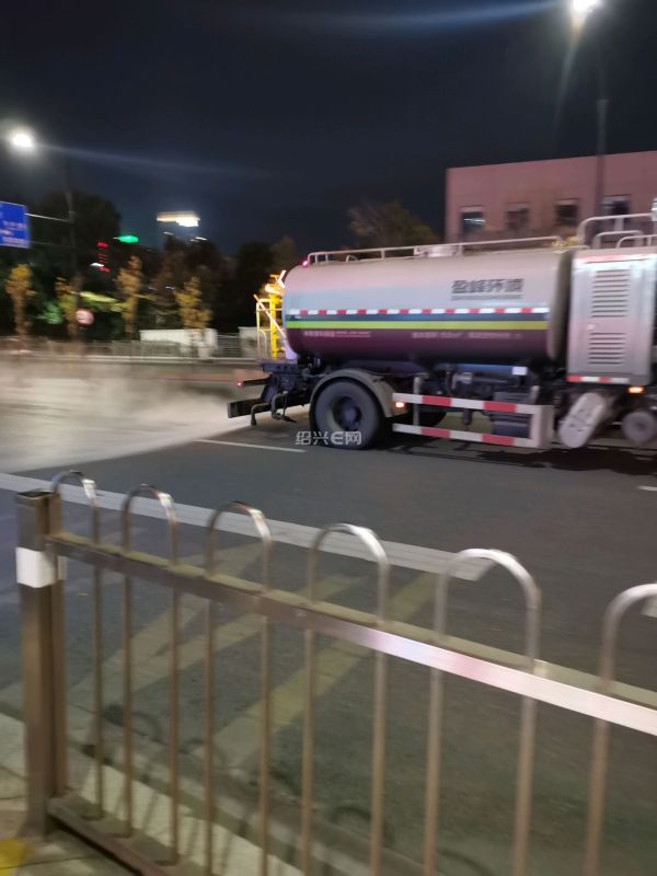 这个水是非洒不可吗?等车等的本来就冷,还来个水花~,路都浇湿了,那些开电瓶车的可要小心了。