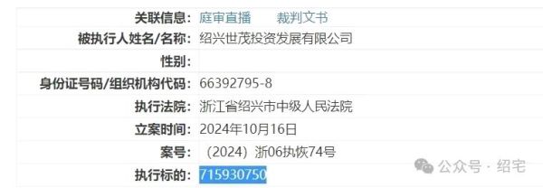 绍兴世茂广场,曾是绍兴顶流的购物广场,根据执行公开网的信息,这次拍卖源于2024年10月16日的立案信息,这起案件的执行标的是7.16亿。