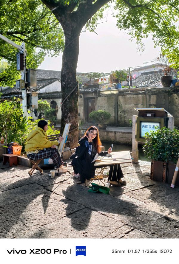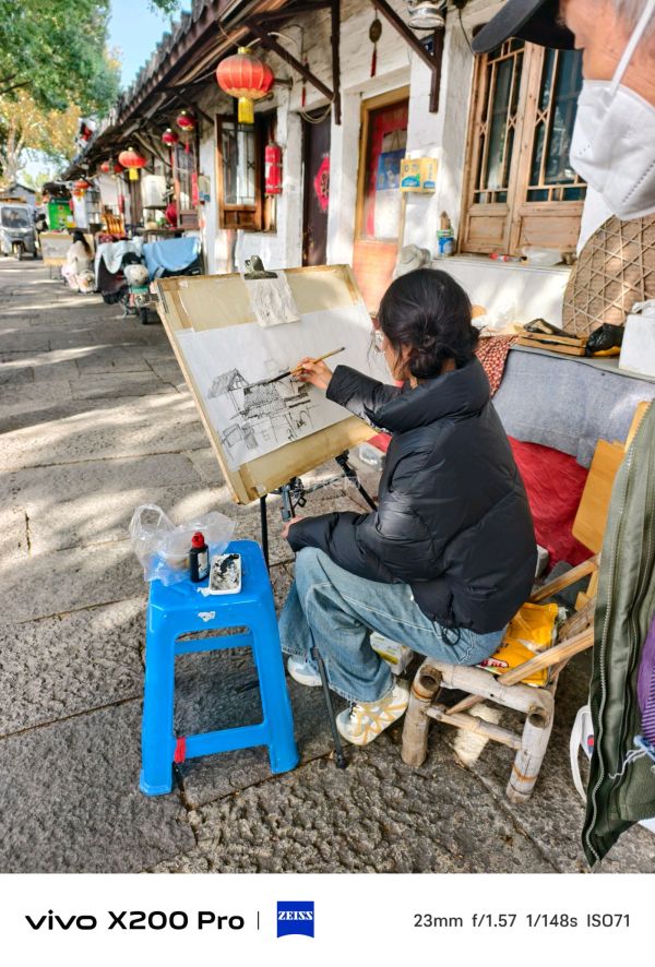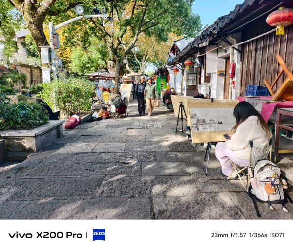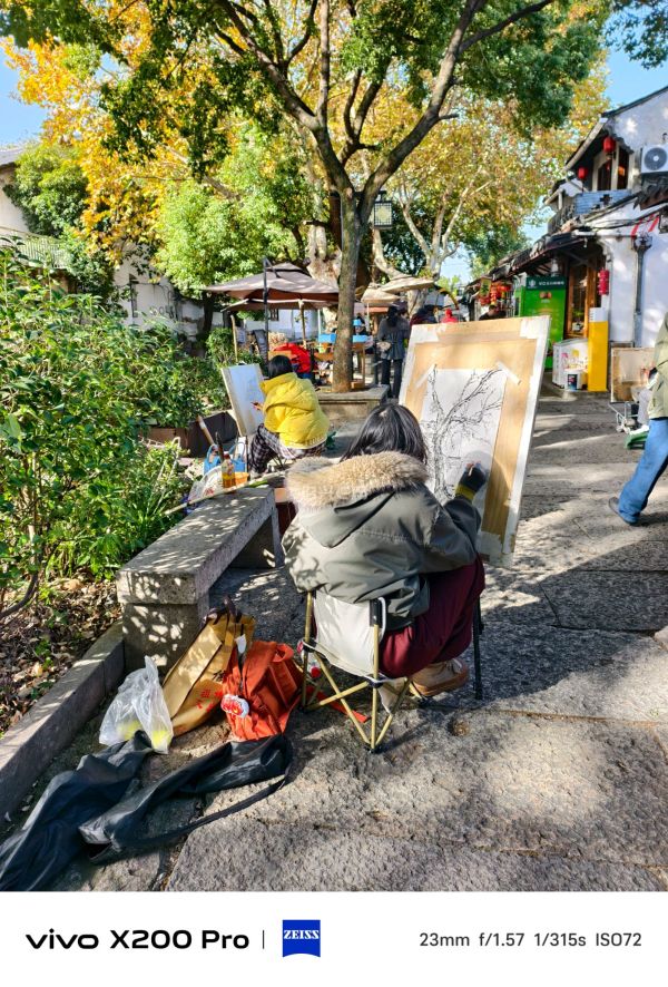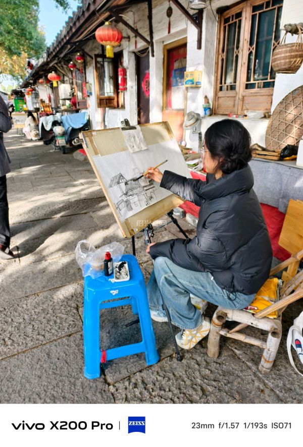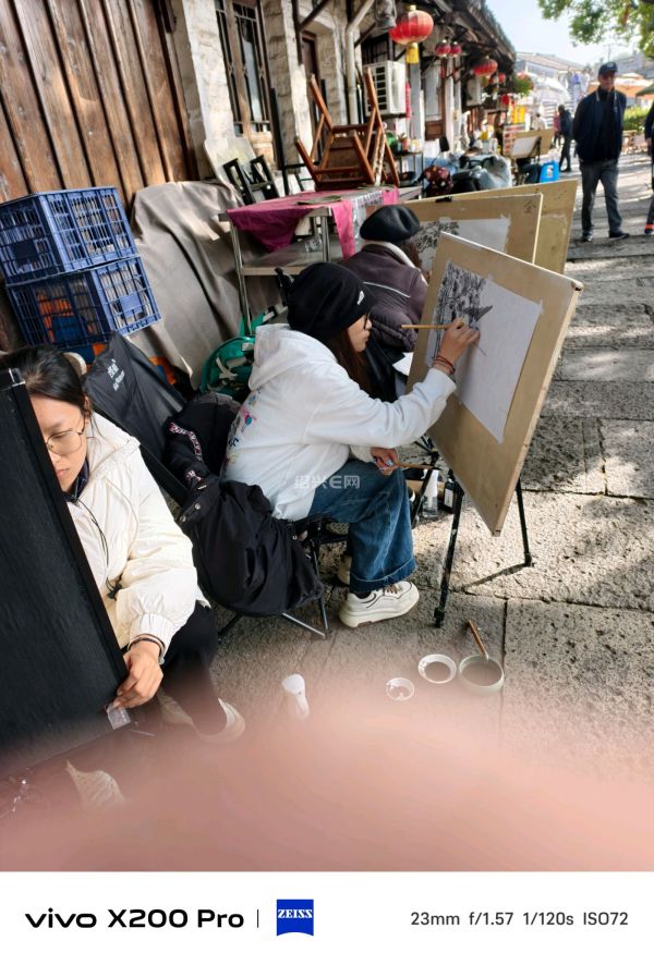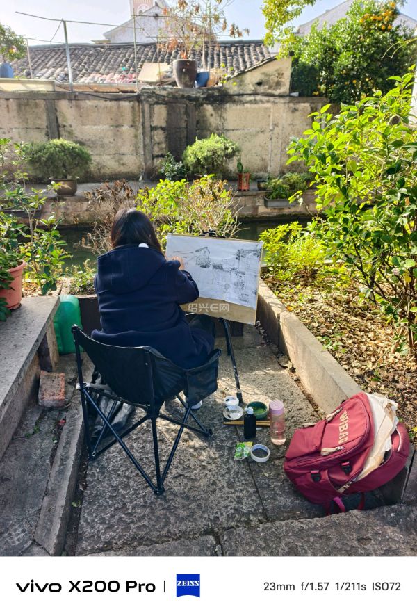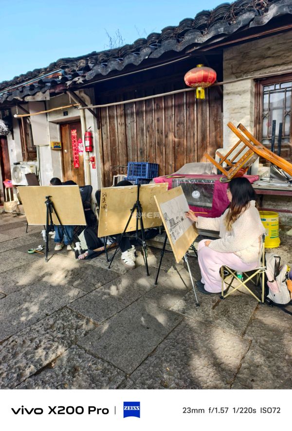 走进八字桥发现一支写生的女生队伍,各坐其位在画老房子等,这支画图团队给八字桥带了另外的风景。