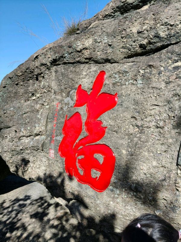 有次去爬山,正好碰到师父们在描,我让他们把笔给我,涂了一个字。