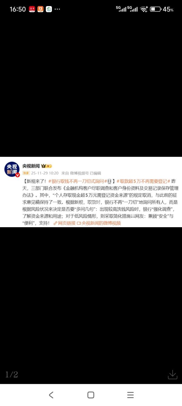 11月28日,中国人民银行、国家金融监督管理总局、中国证监会联合发布《金融机构客户尽职调查和客户身份资料及交易记录保存管理办法》。其中,“个人存取现金超5万元需登记资金来源”的规定取消,与此前的征求意见稿保持了一致。
