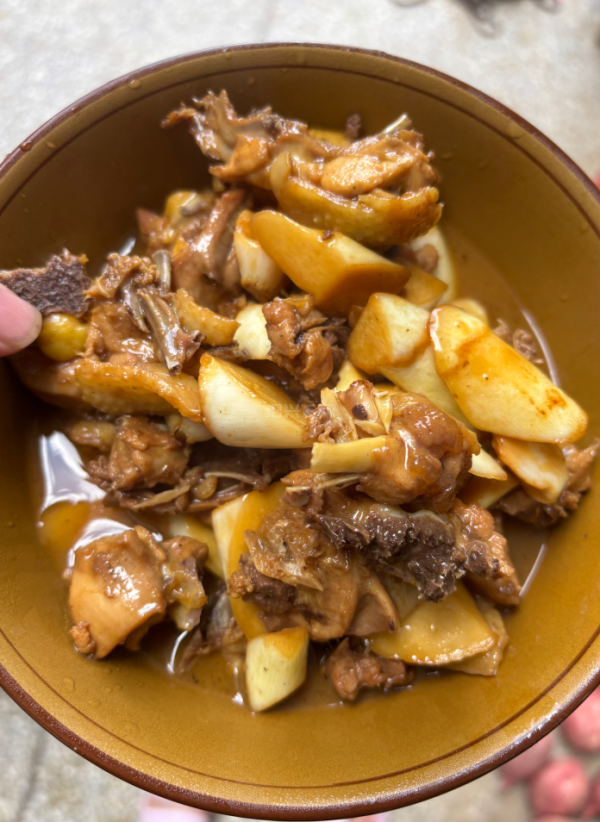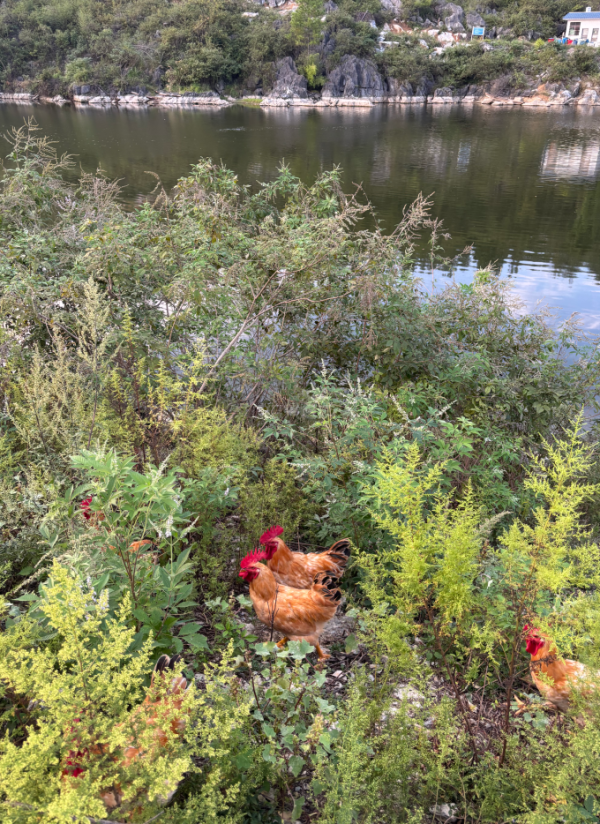 自己不仅喜欢逛街也喜欢做菜给家人吃,秉承菜中不放猪肉的原则,在集市上买了几个当地茭白(当地人叫高笋),然后去水库那里抓了几只走地鸡(这个走地鸡真的是难抓,真的是正宗的不能再正宗的走地鸡),最后和丈母娘、孩子们一起去地里现场拔了几个嫩姜,自己亲自下厨炒一碗嫩姜茭白炒走地鸡,也算中午亲戚大聚餐中添加一碗,哈哈!
