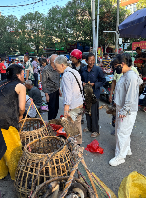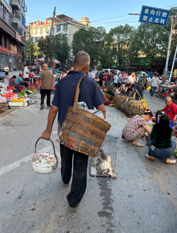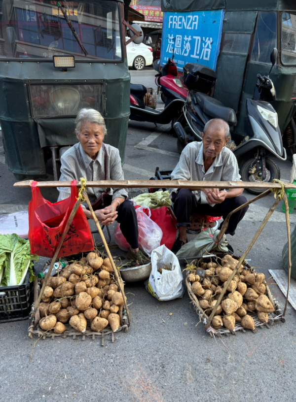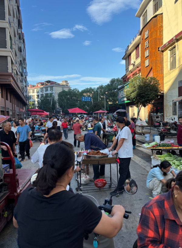 这次国庆陪老婆回趟隆回老家,我意外的发现了他们当地最大的民营菜场—朝阳市场,和老婆2014年结的婚,11年了,作为超级爱逛当地菜市场的我,竟然今年才发现这个菜市场,因此我老婆被我狠狠地说了一顿,而作为路痴的她竟然也说她也第一次和我逛这个菜市场,朝阳市场基本都是四方的本地人在大街上进行就地摆摊,三条大街从不同的方向延伸过来,最终汇聚在一个地方,所以以这个汇集地为中心然后以1km为半径画一个圆的范围内就是上述所谓朝阳市场的摆摊区域;