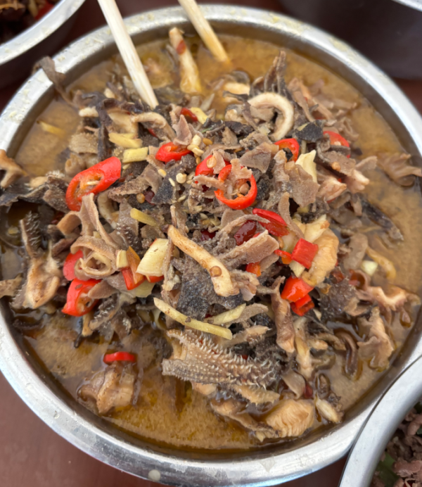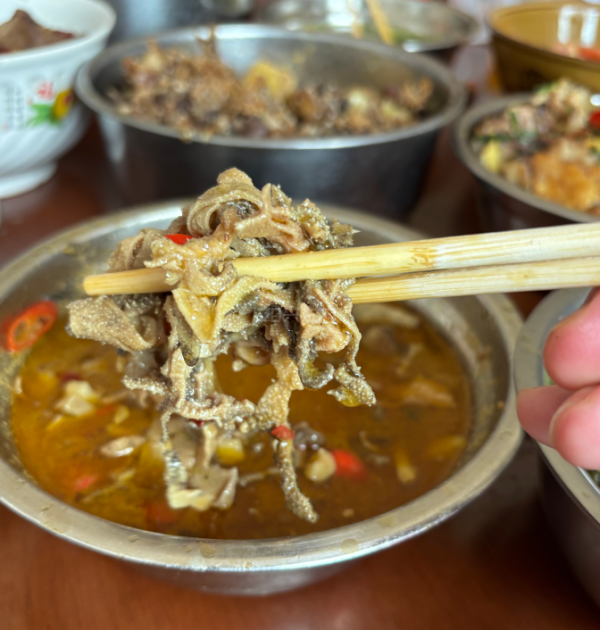 另外,这边的亲戚每天都是做菜的高手,最拿手的菜冬天来说是:本地羊肉炖自制豆腐干、牛百叶爆炒等