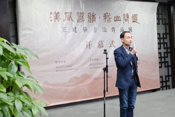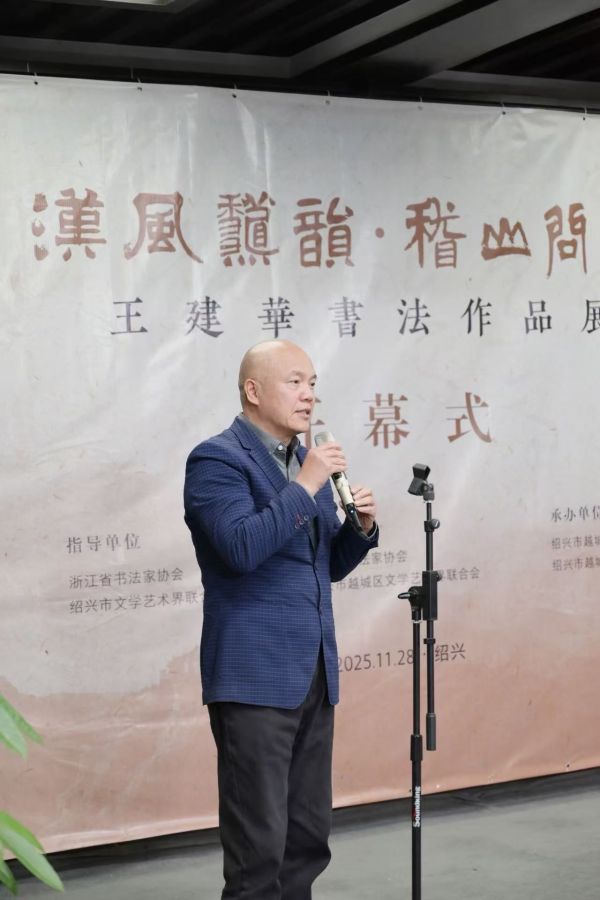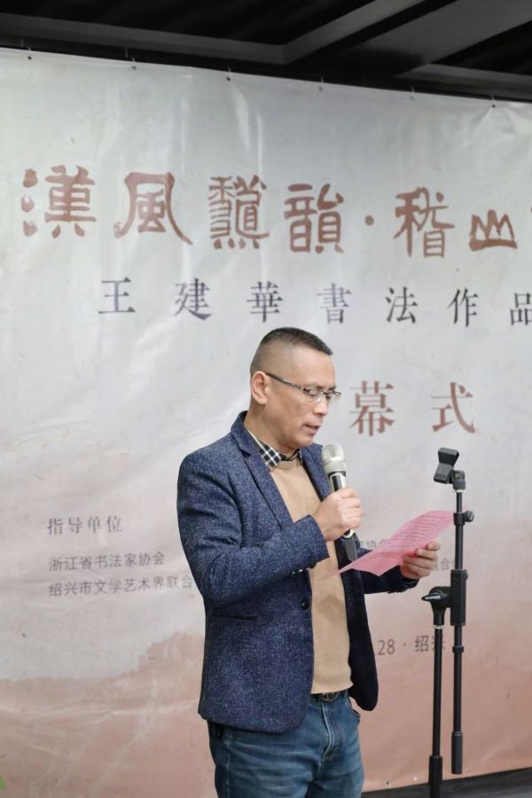 由绍兴市书法家协会,越城区文联主办的“汉风秋韵,稽山问道”一一王建华书法作品展,11月28日在绍兴市非遗馆隆重开展。