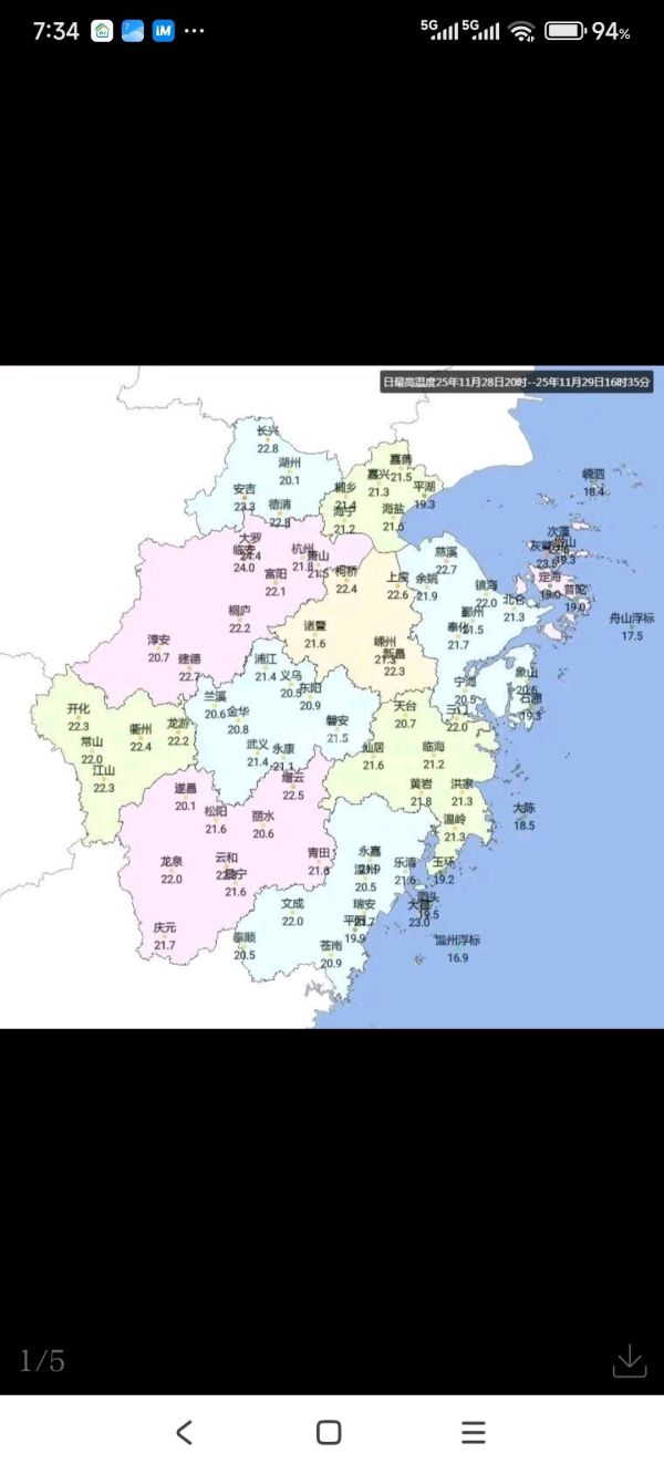 昨天,绍兴各地的最高气温