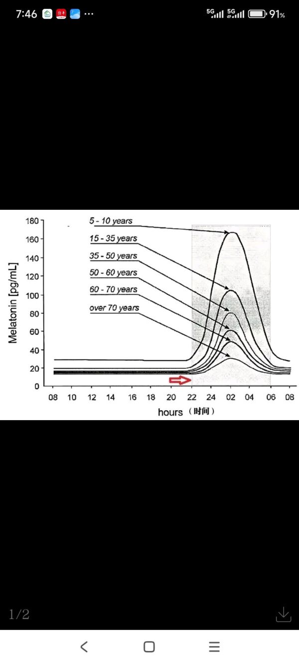褪黑素的作用是帮助睡眠,它的分泌受光线影响具有昼夜节律性:白天,褪黑素的分泌维持在较低水平;22点左右,褪黑素的分泌开始陡然增加。