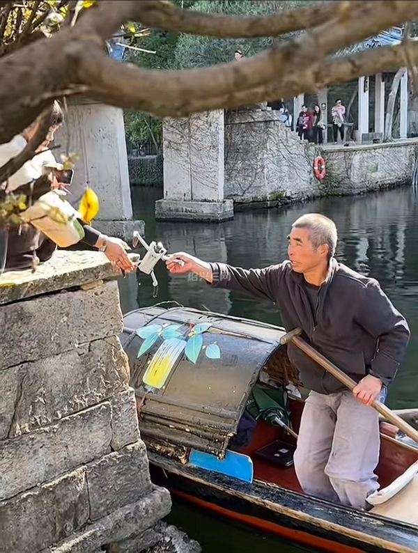 昨天发生在东湖景区一幕,照片里的这位东湖船工,正在把从河里打捞上来的无人机交还给游客手中。看见了,拍摄下来,表扬一下!