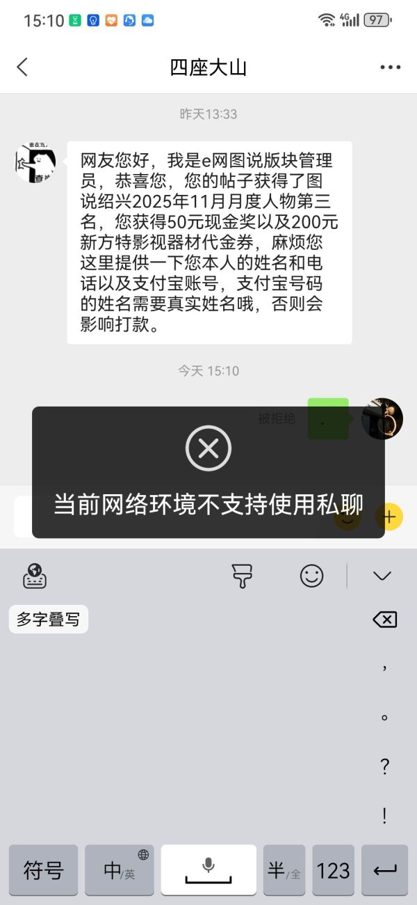 回 第5楼(四座大山)的帖子 四座大山:秋姑姑,方便问问被拒绝的时候的提示框写了什么吗,我让技术排查一下情况 (2025-12-02 13:27)