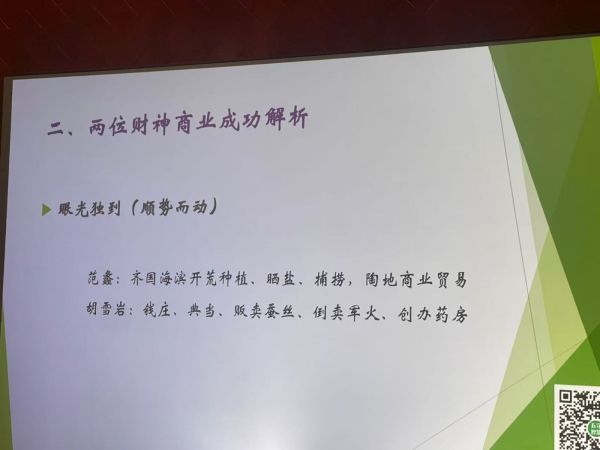 两个小时的时间,严家明博士一是解读两位财神的成功密码,指出他们的成功具有必然性,二是分析财神与“财神”的人生结局为何会迥然不同。在此基础上,结合当今的社会环境,从做人做事多方面阐述二人给予我们的启示。