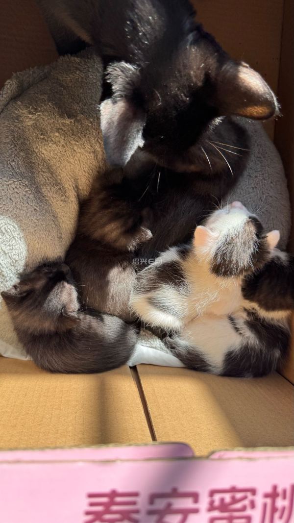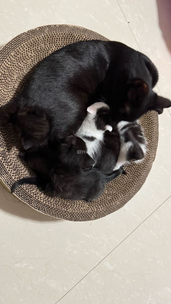 新生小猫,2只奶牛猫,3个纯黑色的。大猫是母猫。超级黏人听话。 冬天生的应该是掉毛很少的猫咪