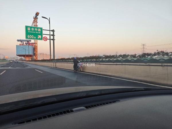 一大早这个电瓶车在高架上抛锚了,车主推着在前行,离匝道还有毛二公里。。。。