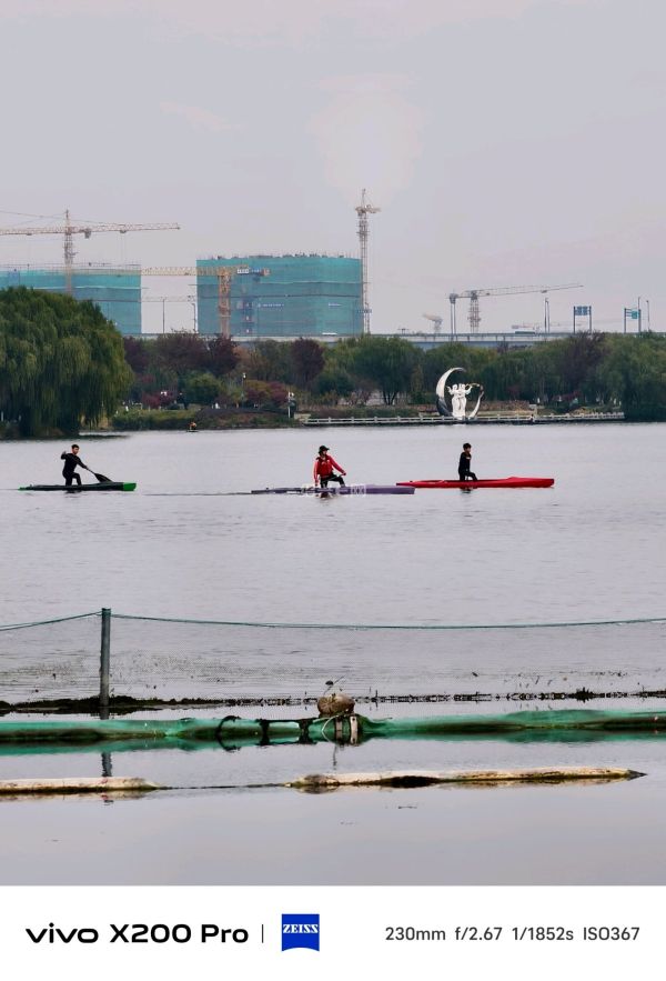 冬季里迪荡湖上,皮划艇运动员们一个个雄心勃勃,你追我赶,在教练的指导下不畏艰险的在刻苦训练。