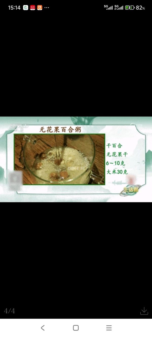 无花果富含矿物质、果胶、纤维素等,有助于化痰、润肺、止咳。取干百合、无花果干分别6~10克、普通大米30克,一起煮粥,每天1次,连续食用3天。