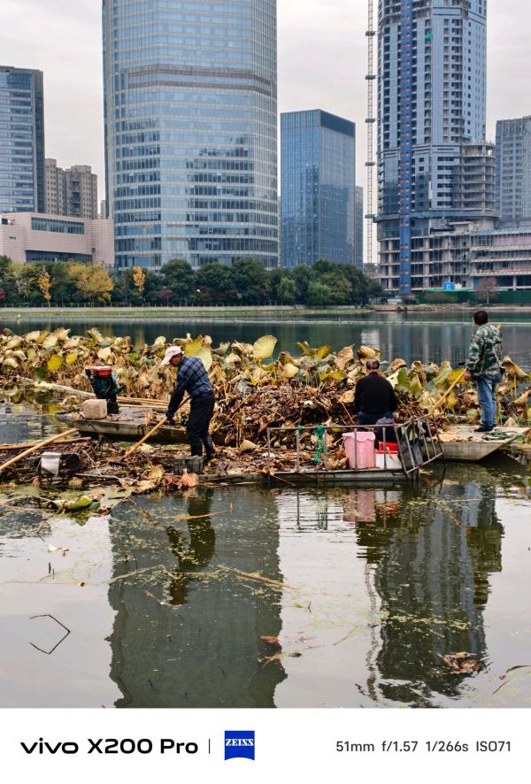 聪明,冬天河道里的水草,芦苇,美人蕉,荷叶等等就应该清理。否则烂在河里,成为肥料,明年的蓝藻又要爆发了