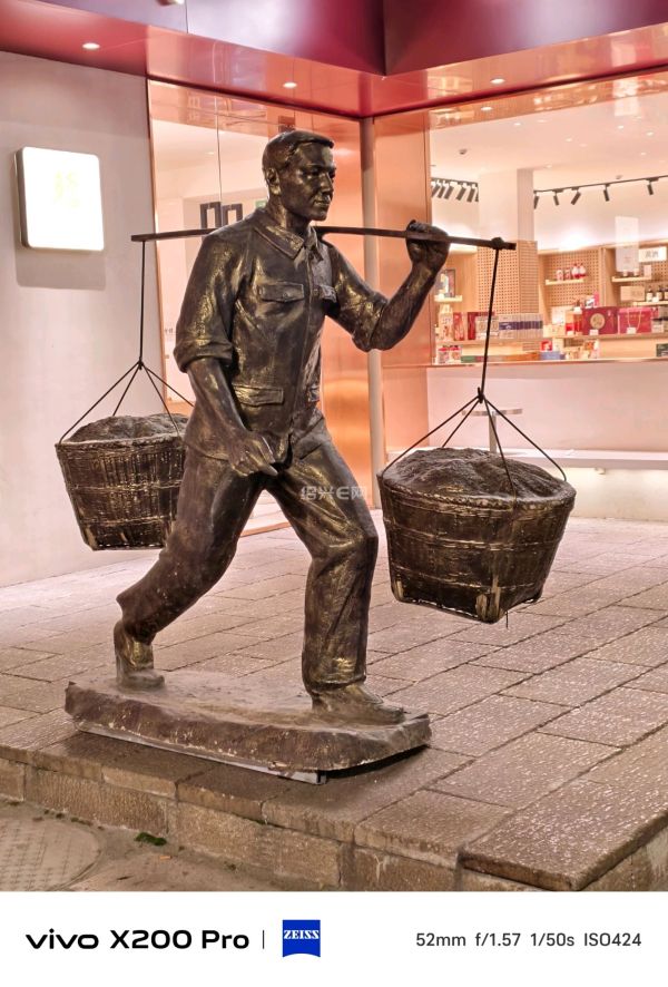 记得我9.21号发过帖子,城市广场地铁G出口旁有一塑雕像掉了一只箩筐。时隔两个多月,昨天晚上路过看见这雕塑又立在那边了,经过一段时间的修正晚好无损的重新上岗了。图五是之前拍的