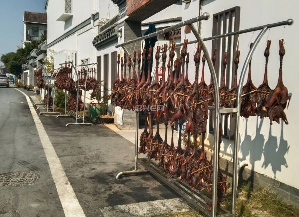 看,这户人家的院子门口晒了好多酱鸭呢!