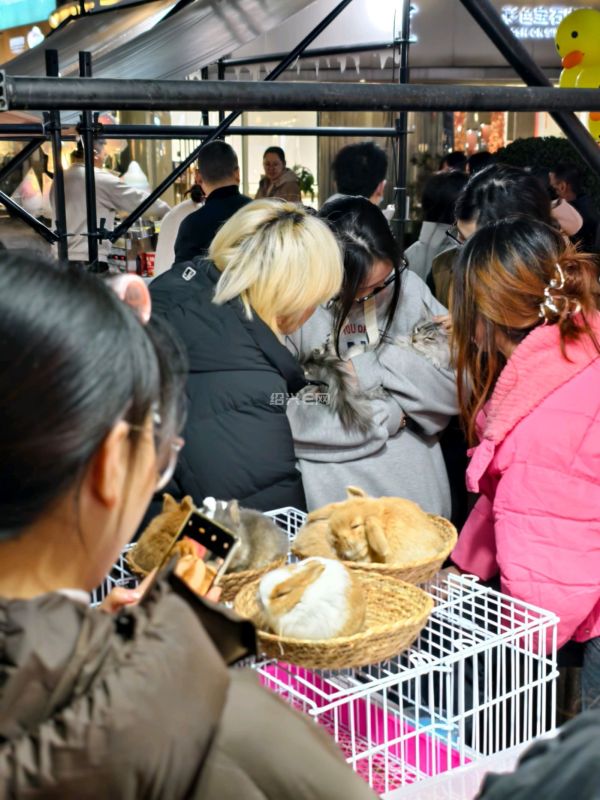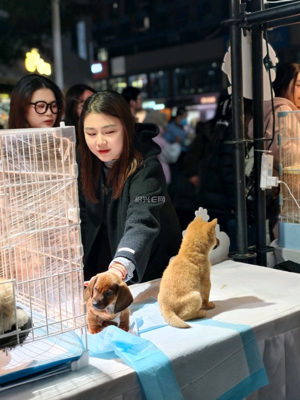 周末的惠坊街,宠物摊位前人气爆棚:萌犬幼猫憨态可掬,顾客驻足逗趣询价,宠物经济点亮新消费潮流。