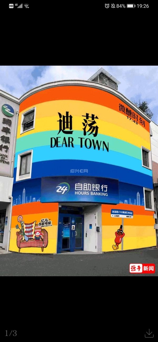 “咦,银行变成彩虹色的了!”这几天,路过绍兴越城区剡溪路瑞丰银行新城支行的市民,都会忍不住多看几眼。原本普普通通的蓝白色外墙,如今涂上了明亮欢快的彩虹色块,成了街头一道意外又温暖的风景。