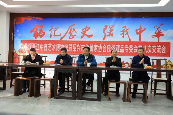 绍兴市收藏家协会民俗藏品专委会的藏家们,分别与上虞区收藏家协会会长陆建国,中鑫集团有限公司创始人,浙江中鑫艺术博物馆创办人王水鑫,馆长陈少峰;上浦镇大善小坞村党委书记虞建淼、副书记赵荣江等相关领导进行了收藏经验的交流。