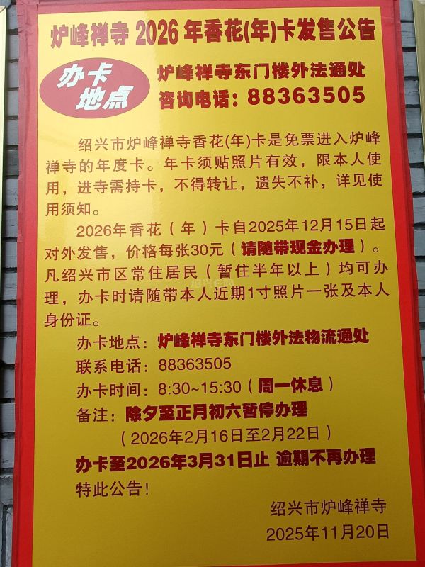香炉峰办年卡点换了,今年是在香炉峰东门法物流通处办理了