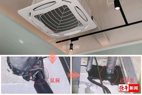 从她提供的现场视频可以看到,一只老鼠在天花板的管道和灯带区域(中央空调附近)快速窜动,最后消失在结构缝隙中。
