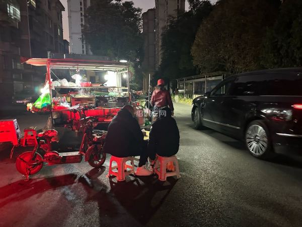 很常见的,安置小区里摆摊卖吃食、卖蔬菜、或者是流动摊贩很多的