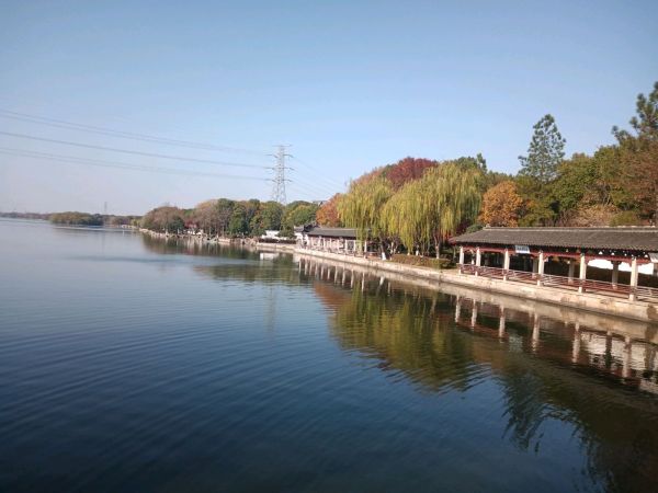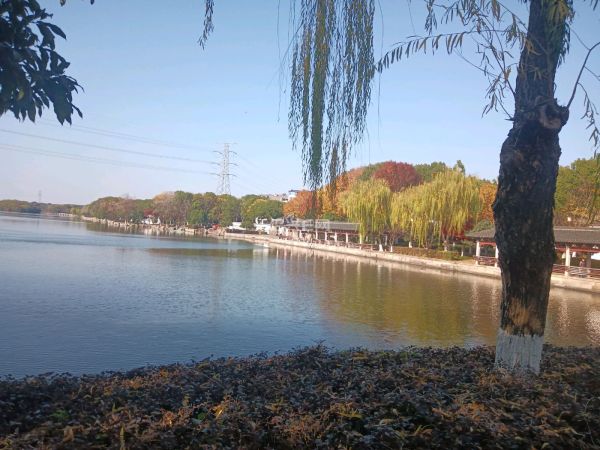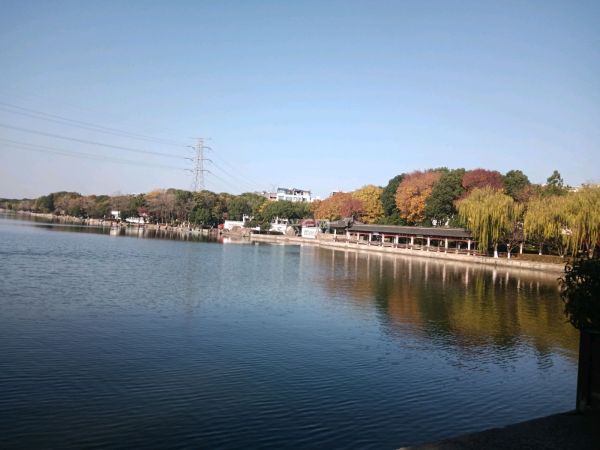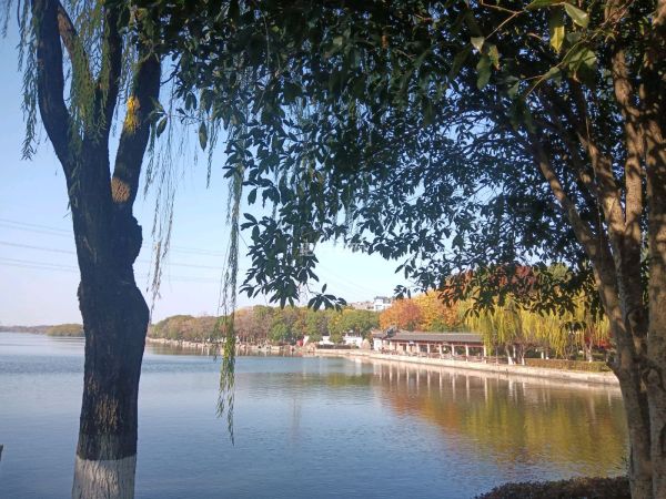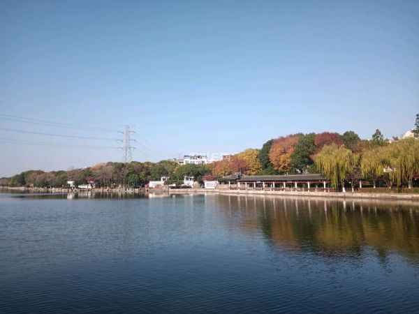 秋色映湖,碧空如洗,景色让人迷留,昨天有七八个人对此风景产生感情,那里冬泳亲肤。勇敢了。沉醉。