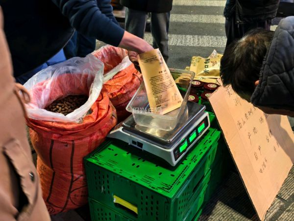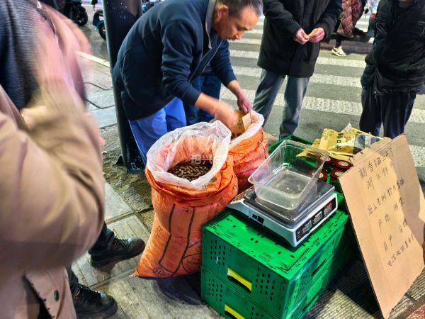 名人广场现稽东香榧售卖点,单价25-30元/斤。近年香榧因产量大增等因素,价格持续走低,较巅峰期大幅下降。