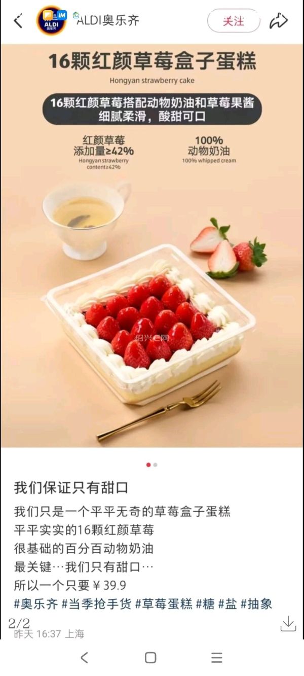 关于网友认为其宣传语对标盒马的猜测,沃尔玛客服未正面回应。奥乐齐客服则回复称,十六颗红颜草莓盒子蛋糕是新推出的产品,具体介绍可以在小程序内查看。其称:“奥乐齐会不定时推出新产品,和盒马的事情没有关系。”