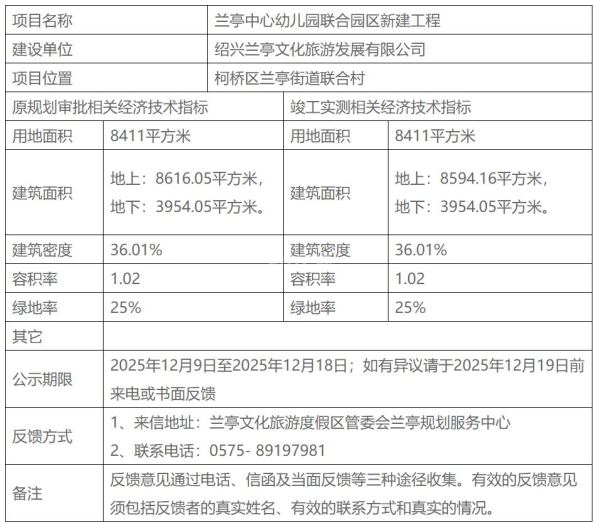 日前,绍兴市自然资源和规划局柯桥分局发布了兰亭中心幼儿园联合园区新建工程建设项目竣工规划核验公示。
