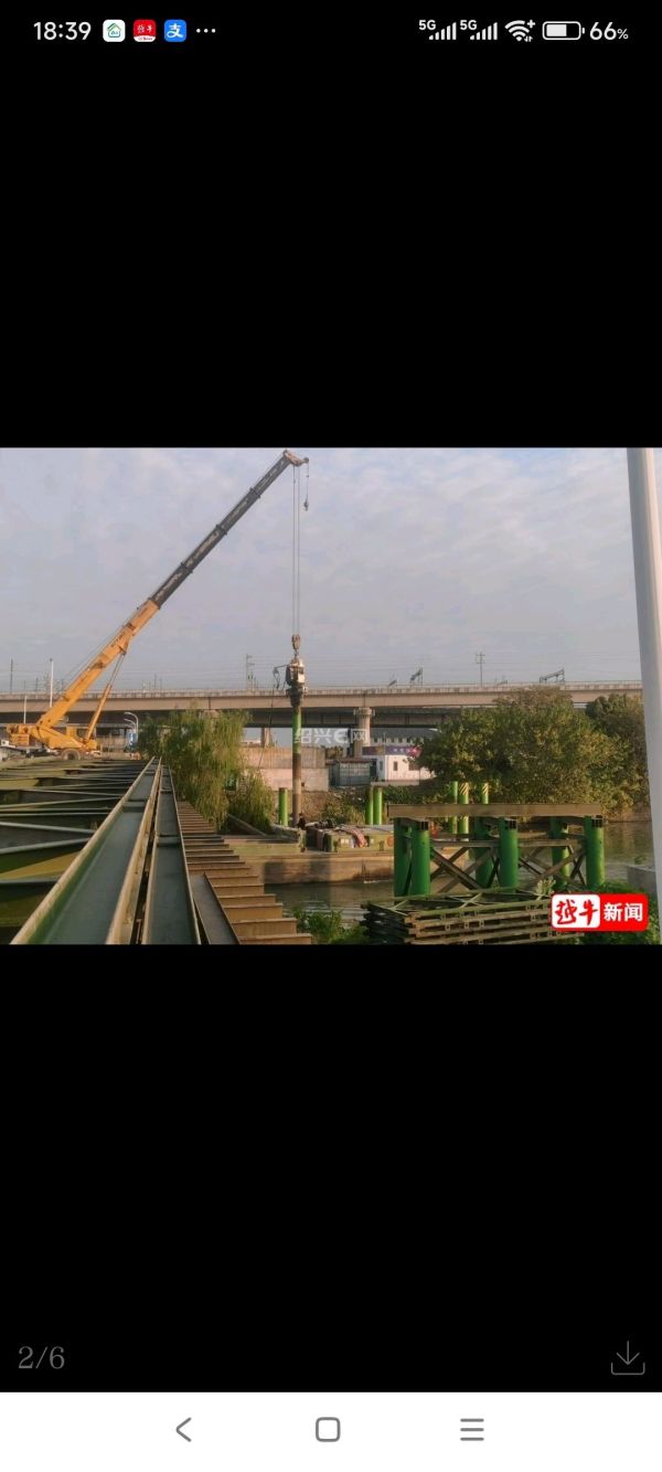 今天(12月10日)上午,越牛新闻记者在现场看到,长约百米的人行钢便桥拆除工作已进入收尾阶段。施工现场,工人们正在对桥墩进行最后的牵引拆除作业。