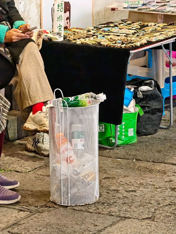 近日,仓桥直街街头出现暖心一幕,有大妈在摊位前放置专收饮料瓶的垃圾桶,她们主动回收游客饮料瓶,既让闲置瓶罐变废为宝,又助力街头垃圾分类,用朴素行动践行环保,便捷又暖心,赢得过往市民纷纷点赞。