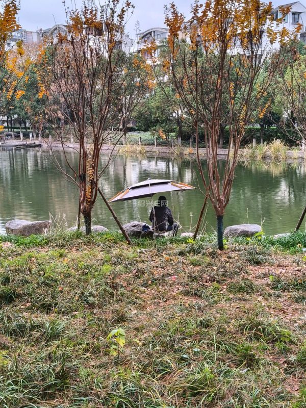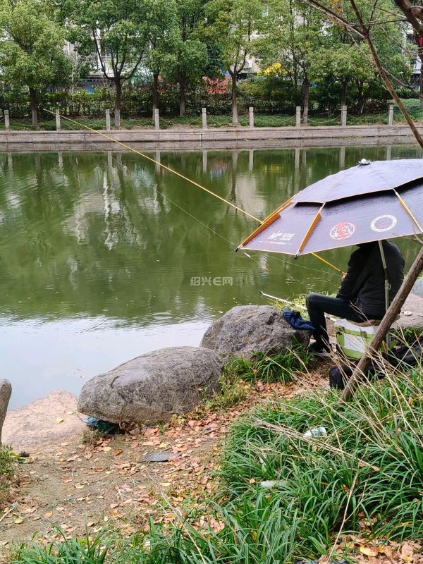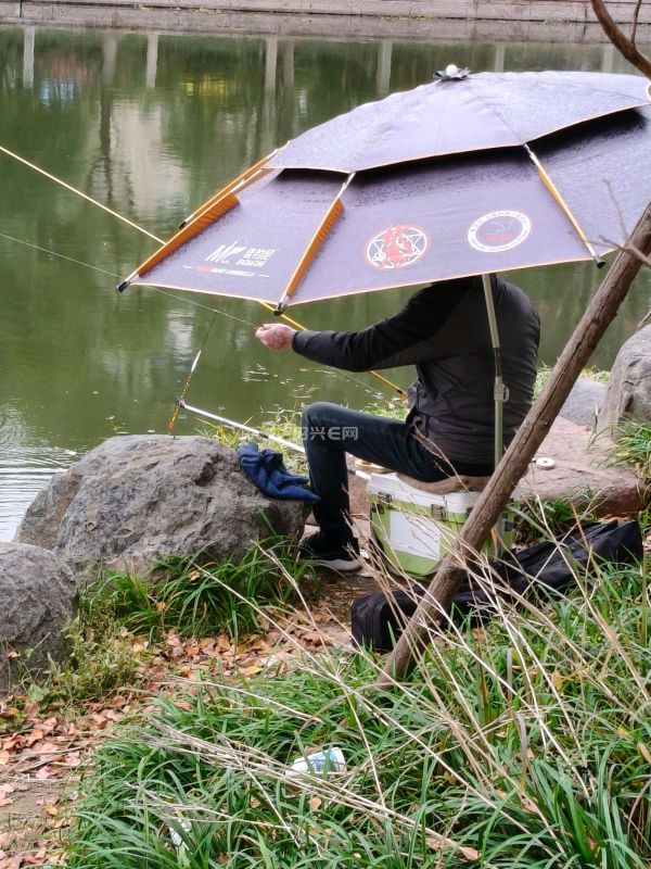 今天降温了,天还下着雨,一大早就看到这位在河边钓鱼的大神,这精神,难能可贵!