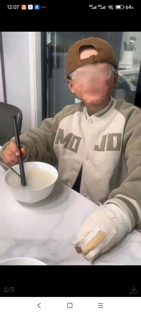 2023年6月,广东揭阳,一位宝妈正在客厅陪孩子玩耍,不料孩子将手中的氢气球砸向吹风机引发了爆炸。所幸孩子只是受到了惊吓,而妈妈身上大面积烧伤,伤口触目惊心。