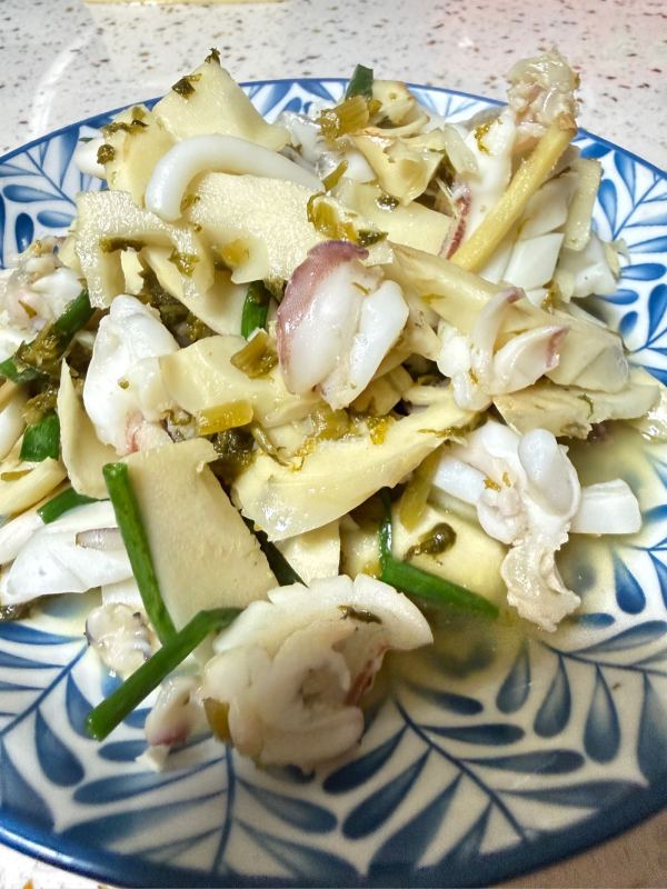 梅童清蒸,墨鱼笋片炒咸菜,刀豆炒肉片,晚季茭白不够鲜
