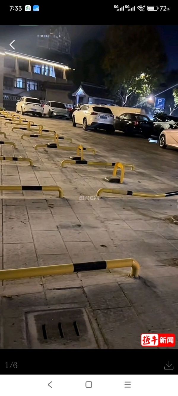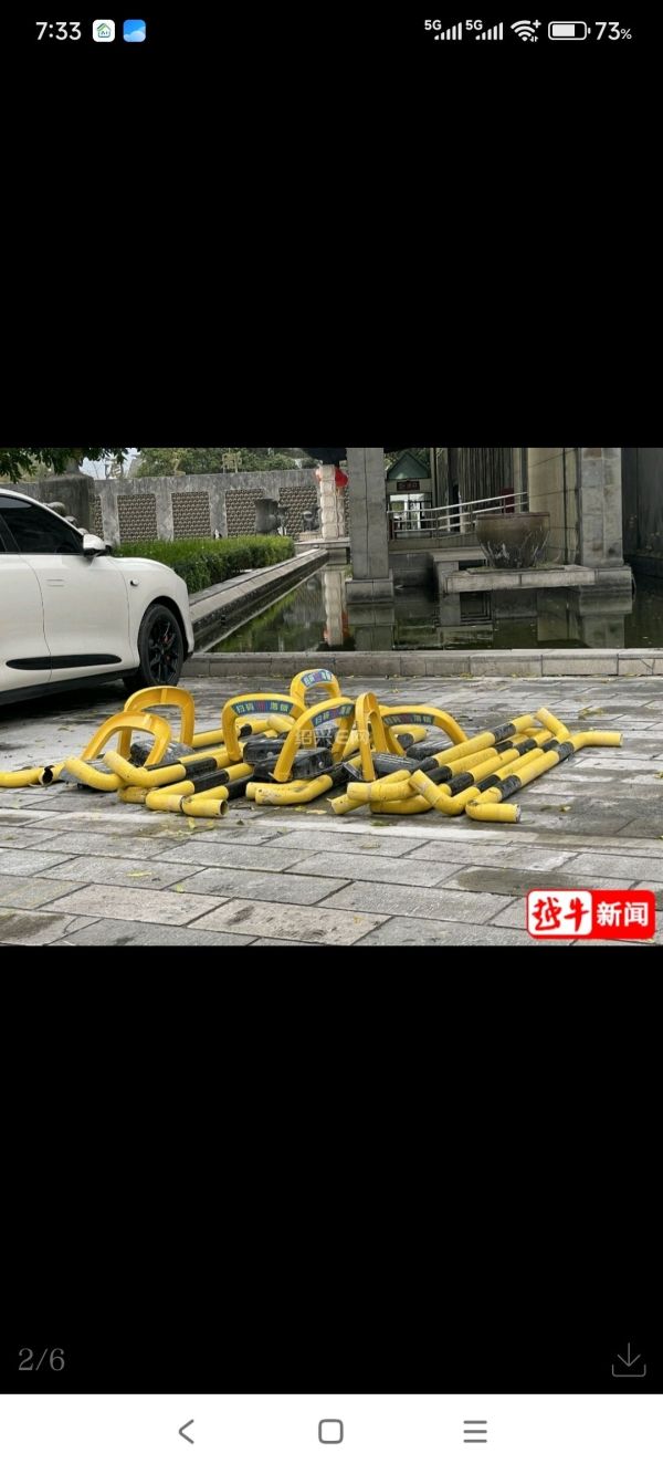 记者来到黄酒博物馆地面停车场,发现报料视频中反映的乱象已经不见踪影,车辆均规范停放在停车位内。原本地面车位上安装的栏杆、地锁、扫码牌等收费装置已经被拆除,暂时堆放在一旁。