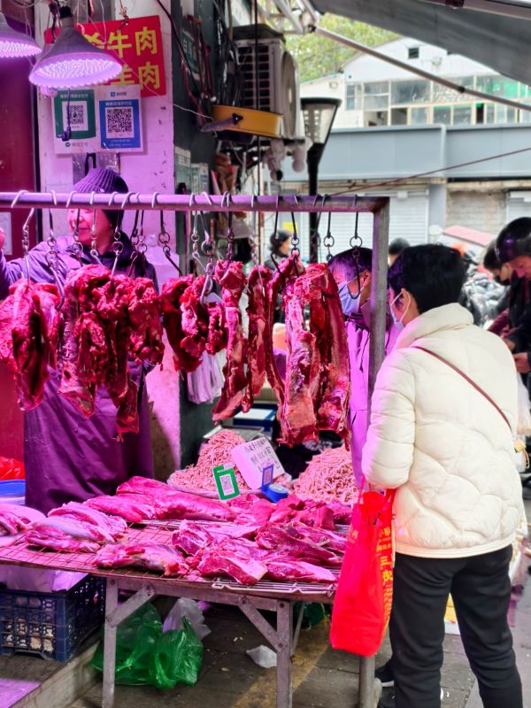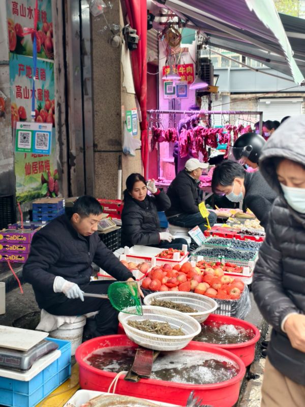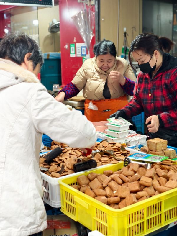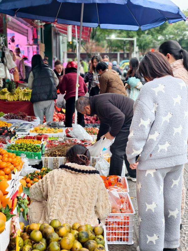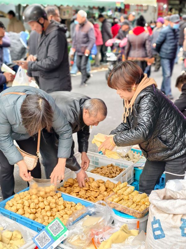 清晨的白马市场早已人声鼎沸,各类蔬菜新鲜实惠,价格比周边市场更便宜。不少老年市民专程搭乘公交赶来,精心挑选心仪菜品,市场内处处洋溢着热闹的生活气息。