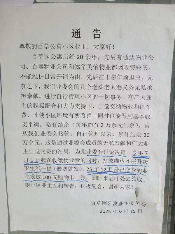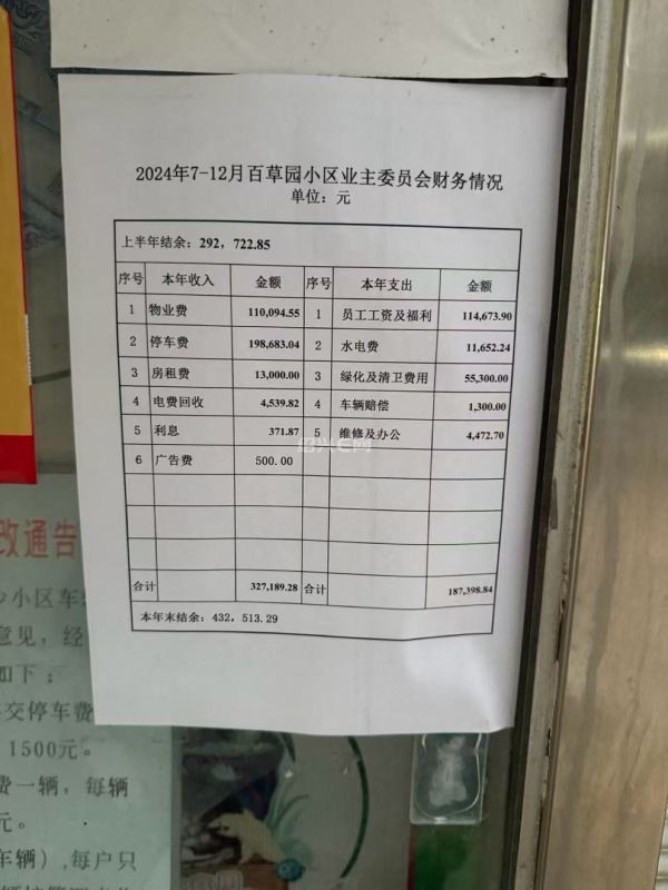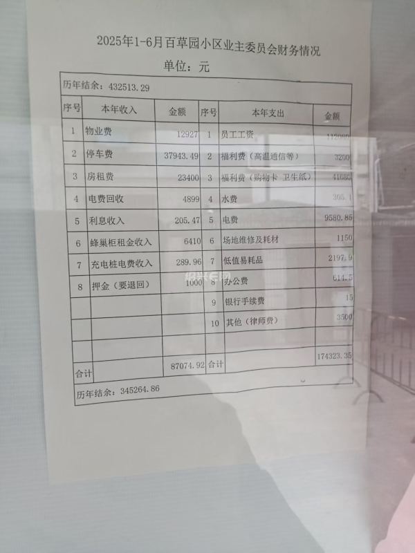 25年上半年物业费、停车费才这么点?这应该是个自治小区吧!说实话每年2万结余,几年下来有3、4十万结余不错了。