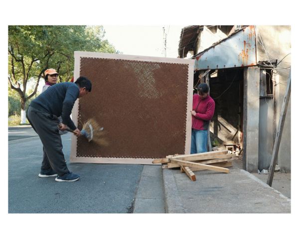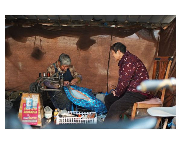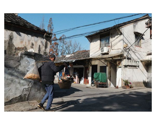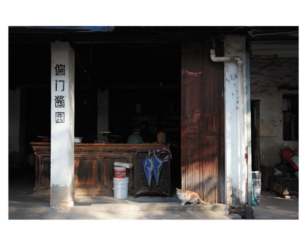 每天太阳刚一露脸,长征钟表店的师傅便透过夹在眼窝上的放大镜,注视钻石机芯一格一格地摆动;棕棚店的王师傅手指翻飞,引着棕线在木架间往来穿梭;修鞋摊的大妈一边和顾客唠家常,一边嗒嗒地摇动着缝纫机;偏门酱园里时常飘出酱瓜的咸香;而花圈店门口的牌桌,永远是前街最热闹的一角……