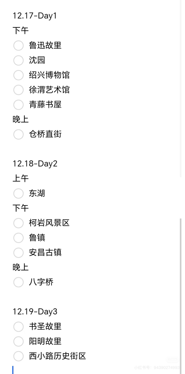 一个绍兴三天游的计划来问问意见。我让她去掉博物馆,搬那么远,往返费时。